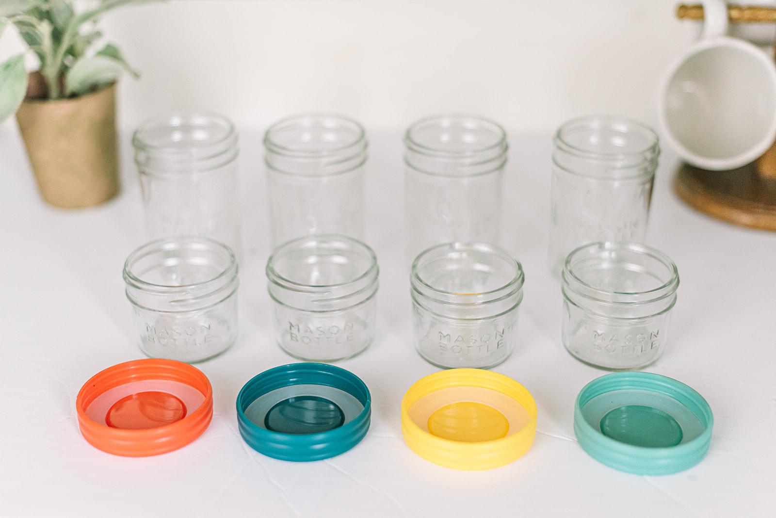 - You can use any “regular-mouth” mason jar that you may already have or can find in most big box stores. Ball, Kerr, and Arkansas Glass brands work best.